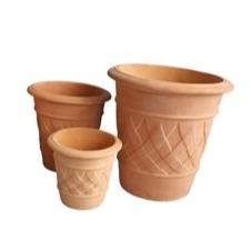 Terracotta is the epitome of timeless garden design. They are made to look naturally aged with warm shades. They will age further with use in the garden.